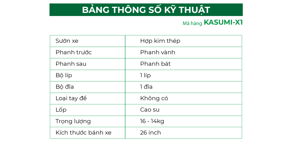 Xe đạp KASUMI X1 được thiết kế với phong cách trẻ trung, nữ tính, rất thích hợp với các bạn nữ sinh, các chị sử dụng với nhiều mục đích khác nhau